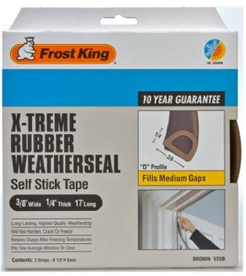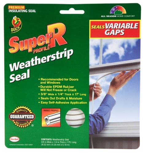 Weatherstripping is a great way to conserve energy and save on utility bills. Did you know you could save up to 10-Percent on your energy costs by properly sealing and insulating areas around the home? The Duck brand offers a full line of home sealing. Duck brand super v profile, EPDM weatherstrip seal completely block drafts around doors and windows. Unique shape profile provides draft-proof and moisture-proof seals for uneven gaps. EPDM rubber seals have excellent weathering and aging resistance. They are great for sealing leaks all year round and are available in four unique profiles. Each profile works for a certain size or type of gap and can be used on windows or doors. EPDM rubber ensures durability and performance to -40-Degree Fahrenheit and is ideal for sub zero climates. Will not freeze or crack. Easy self adhesive application. Whatever your home insulating needs, Duck brand has what it takes to get the job done and save you money today.Duck brand super r profile, EPDM weatherstrip seal completely block drafts around doors and windows.Unique shape profile provides draft-proof and moisture-proof seals.Ideal for variable gapsEPDM rubber ensures durability and performance to -40-Degree Fahrenheit and is ideal for sub zero climates. Will not freeze or crackEasy self adhesive application.